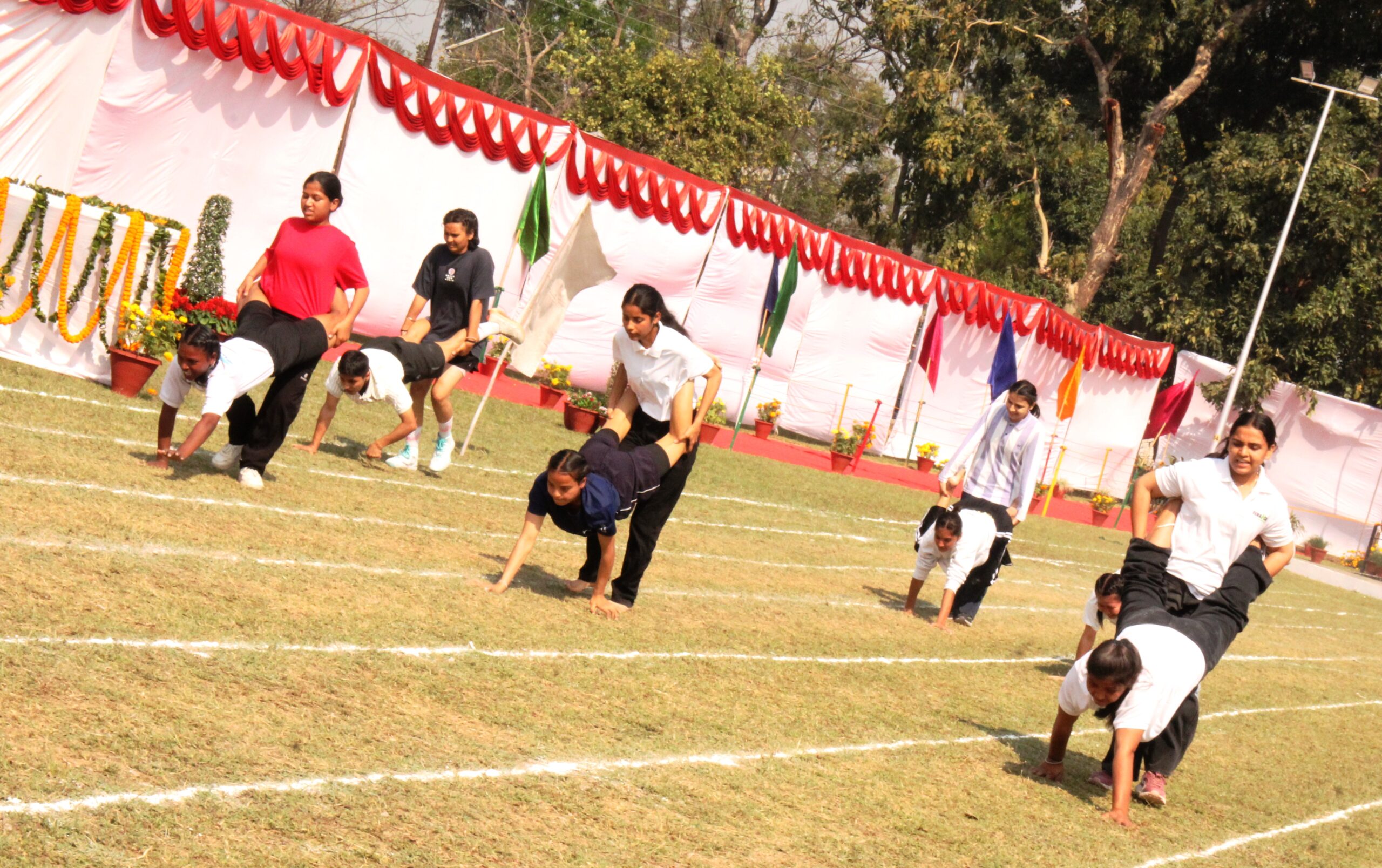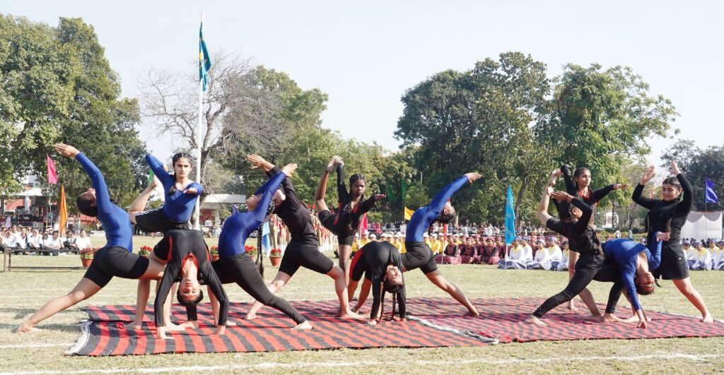The event was further enlivened by cultural and awareness performances. Students of the Dance Department presented the vibrant folk dance Luddi, which has earned accolades across the country. Yoga demonstrations by students promoted the importance of physical fitness and well-being, while volunteers of the VADA Club staged a powerful street play to raise awareness about the menace of drug addiction.