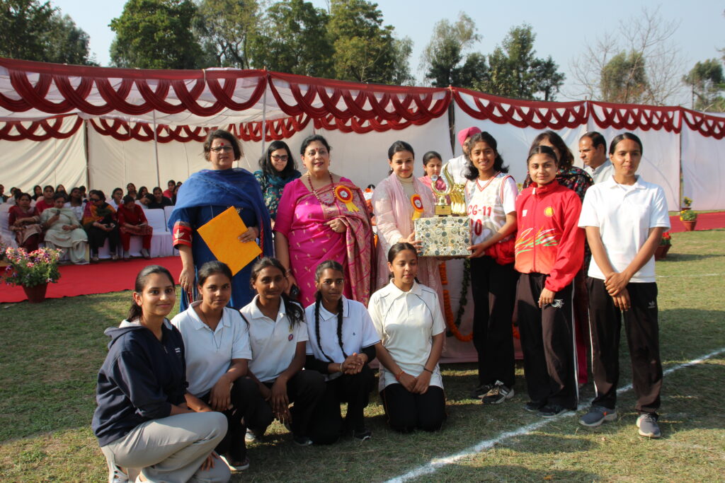 Addressing the gathering, Ms. Radhika Singh, an esteemed alumna of the college, congratulated the winners and applauded the dedication and hard work of both students and faculty. Fondly recalling her time at the institution and appreciating its continued progress, she encouraged students to pursue excellence, emphasizing that “nothing shapes character as sports does.” She inspired the students to excel in their chosen fields and bring pride and honour to both the institution and the nation.