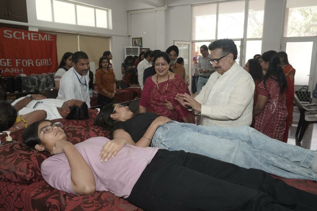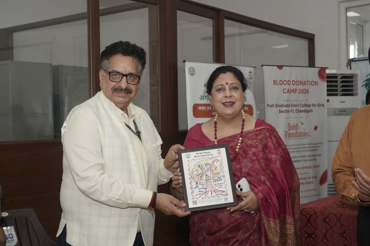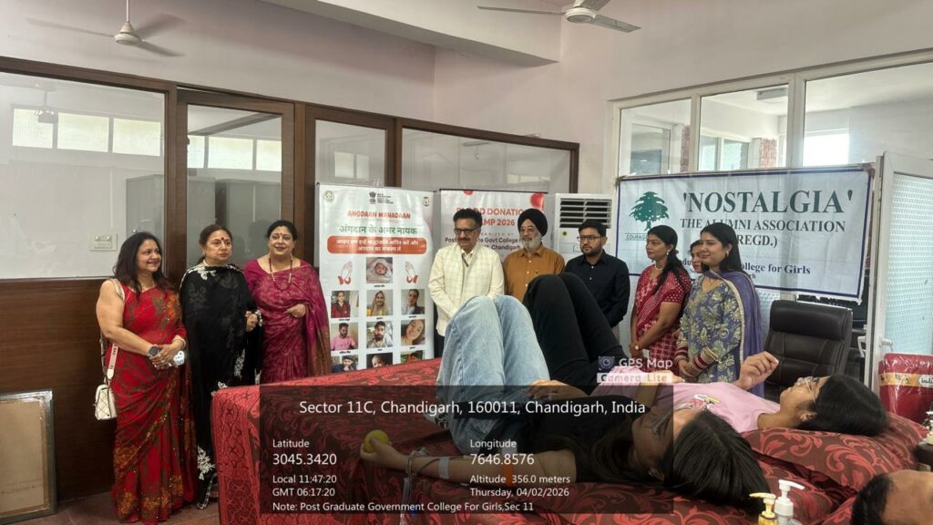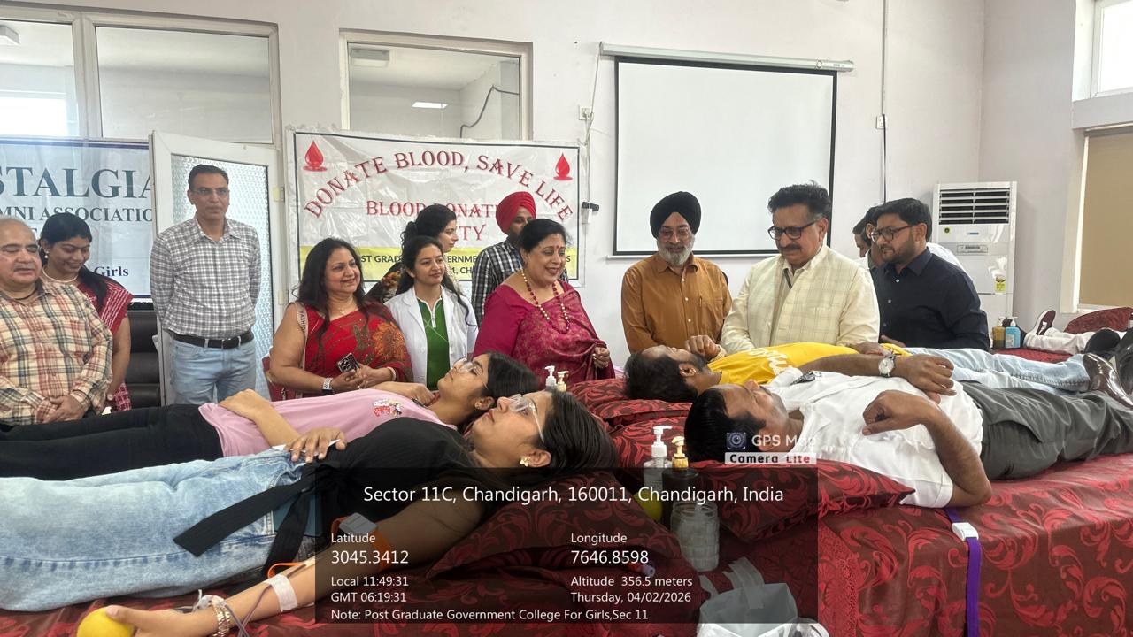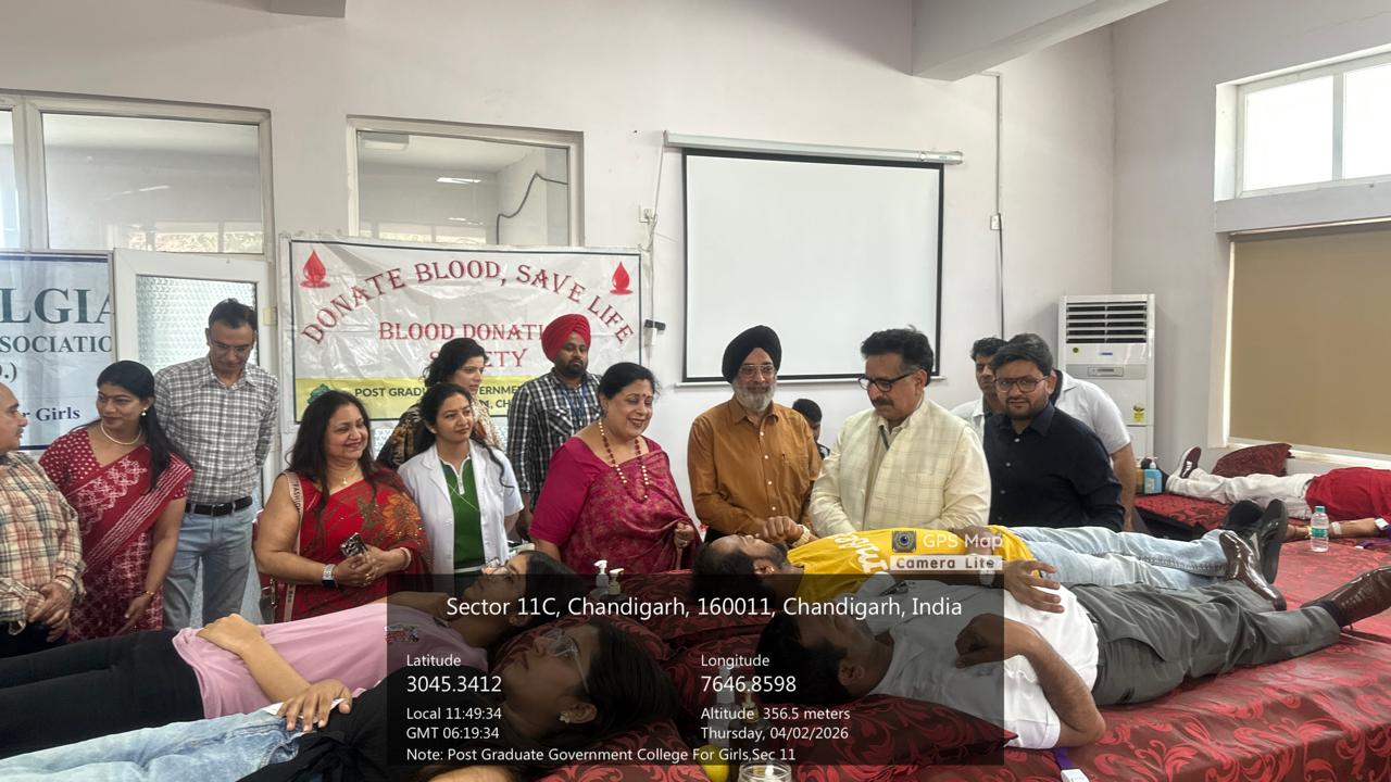 Post Graduate Government College for Girls, Sector 11, Chandigarh, organized a Blood Donation Camp on April 2, 2026, under the inspiring leadership of Principal Prof. (Dr.) Anita Kaushal. The event was honored by the presence of Prof. (Dr.) Vipin Kaushal, Medical Superintendent, Head of the Department of Hospital Administration, and Nodal Officer, ROTTO, PGIMER, who attended as the Chief Guest.